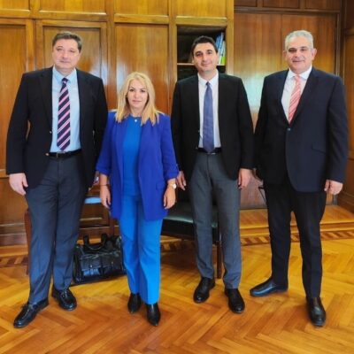 Figure 5. From left to right: Dr. Athanasios Papadopoulos (former President and current Treasurer of the AGC), Ms Anna Mani Papadimitriou (Deputy Minister of Development of Greece), Dr. Ioannis Katsogiannis (current President of the AGC), and Dr. Ioannis Sitaras (current General Secretary of the AGC).