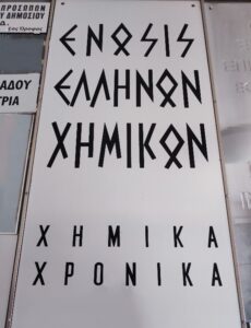 Figure 1. The sign at the entrance of the headquarters building of the Association of Greek Chemists and the editorial office of Chimica Chronica.