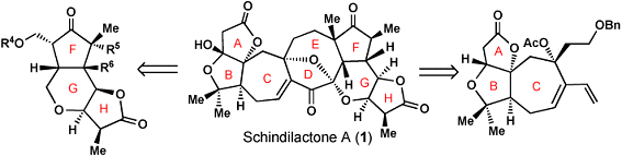 Zhen Yang and colleauges at Peking University, Tsinghua University, and Xiamen University, all China, have completed a 29-step total synthesis of highly oxygenated, octacyclic schindilactone A. They developed their methodology by dividing schindilactone A into three principal components, that is, the ABC, FGH, and CDEF ring moieties.