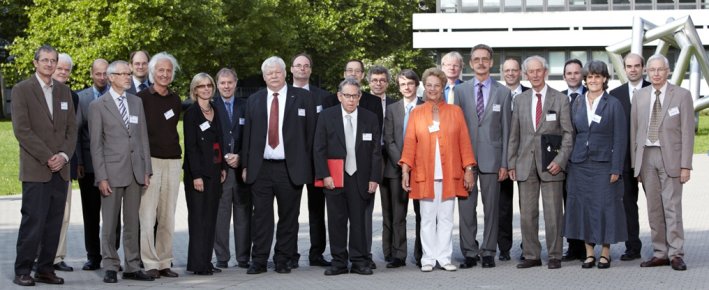 Figure 2. Organizers and Speakers: from left to right: Richard Schrock, Hansgeorg Schnöckel, Peter Roesky, Pekka Pyykkö, Jan-Dierk Grunwaldt, Helmut Schwarz, Doris Wedlich, Manfred Kappes, Horst Hippler, Stefan Bräse, Paul Crutzen, Alan Rocke (hinten), Matthias Olzmann, Carsten Reinhardt, Ursula Weltzien, Ferdi Schüth, Hans Ulrich Weltzien, Joachim Podlech, Heinrich Weltzien, Olaf Deutschmann, Eva Weltzien, Burkhard Luy, Jean-Marie Lehn (Photografer: Alex Stiebritz / AMX-Design).