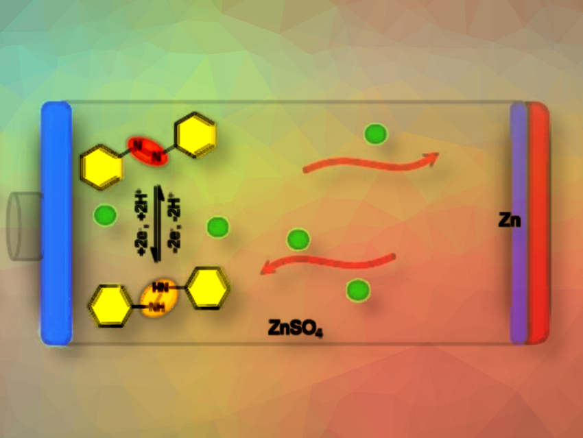 The team chose to use azobenzene, a material that can be produced inexpensively on a large scale and is insoluble in water while being highly soluble in organic solvents. Whereas most other functional groups can only transfer one electron, the azo group (–N=N–) in this molecule is able to reversibly transfer two electrons, which contributes to a high capacity.