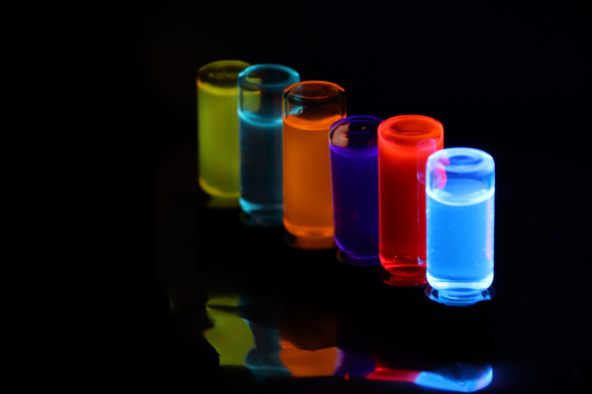 “Apostles of Dyes” Photo by Ishan Sarkar, Chalmers University of Technology, Sweden Here are some of our shy (in visible spectrum) friends who, amidst the darkness (UV, 366 nm), come out of the closet and show their true colors.