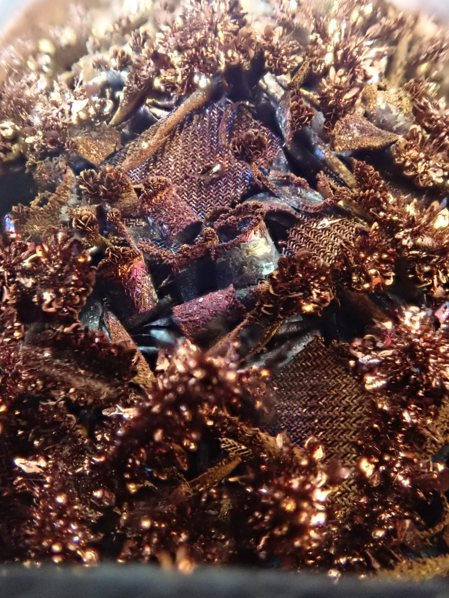 “Fifty shades of titanium oxide” Photo by Vlastimil Mazanek, Czech Republic Titanium pieces were used in a furnace to capture any residual oxygen to prevent oxidation of other materials. The different colors of surfaces are caused by interference of light on variously thick oxide layers