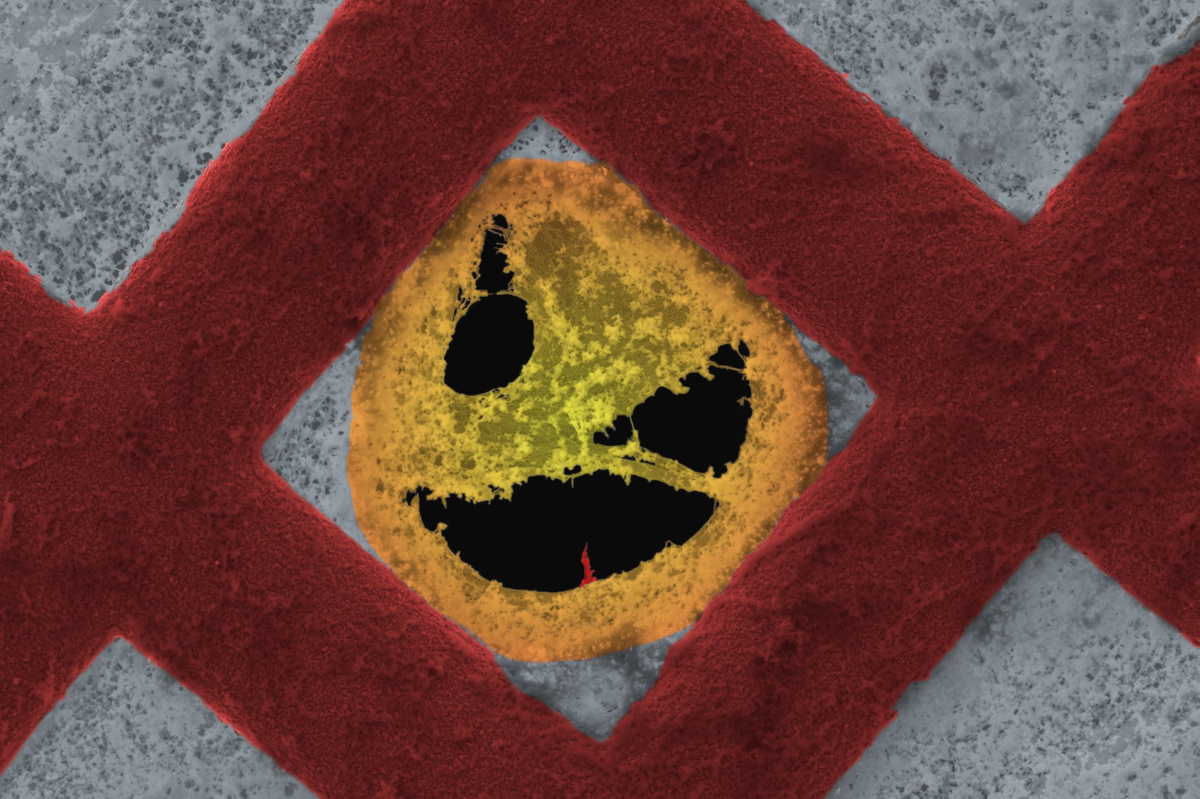 “Smiley” Photo by Vlastimil Mazanek, Czech Republic A BW picture of a damaged TEM grid was taken by SEM and colorized. |